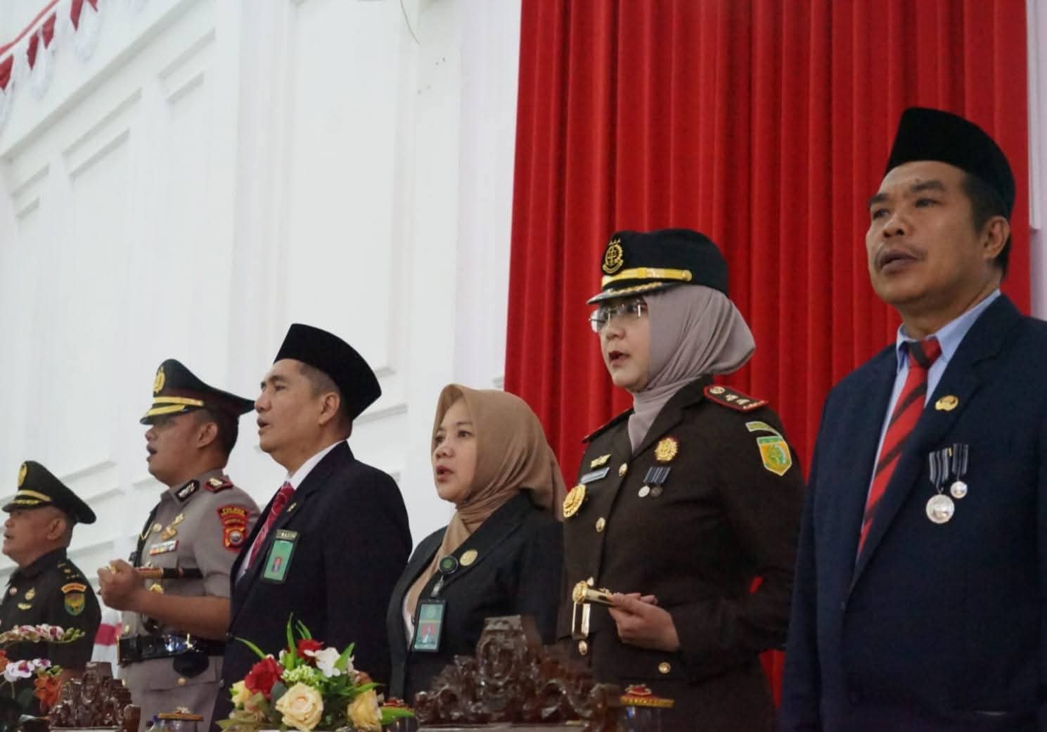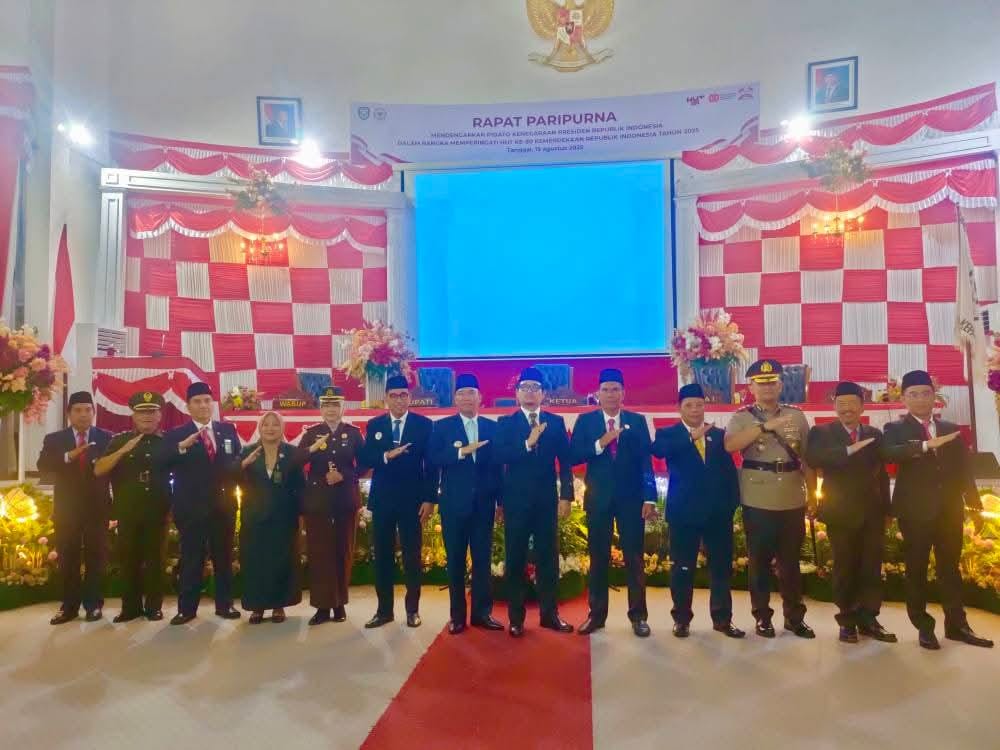 Dalam sambutannya, Ketua DPRD menyampaikan bahwa tema peringatan HUT RI ke-80 tahun ini adalah “Bersatu Berdaulat, Rakyat Sejahtera, Indonesia Maju”. Menurutnya, tema tersebut mencerminkan semangat dan harapan bersama agar rakyat hidup bersatu, berdaulat, sejahtera, dan Indonesia terus maju.