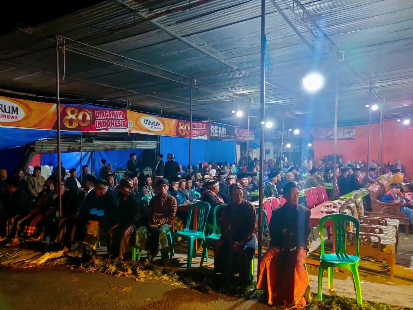 “Sejak pagi telah dilaksanakan rangkaian acara sedekah bumi atau safaran, yakni arak-arakan dua gunungan yang tersusun dari sayuran dan buah-buahan. Gunungan tersebut diarak keliling desa sebagai simbol rasa syukur masyarakat sekaligus untuk memeriahkan HUT Desa Ke-18 serta HUT Kemerdekaan RI ke-80,” papar Yahudi.