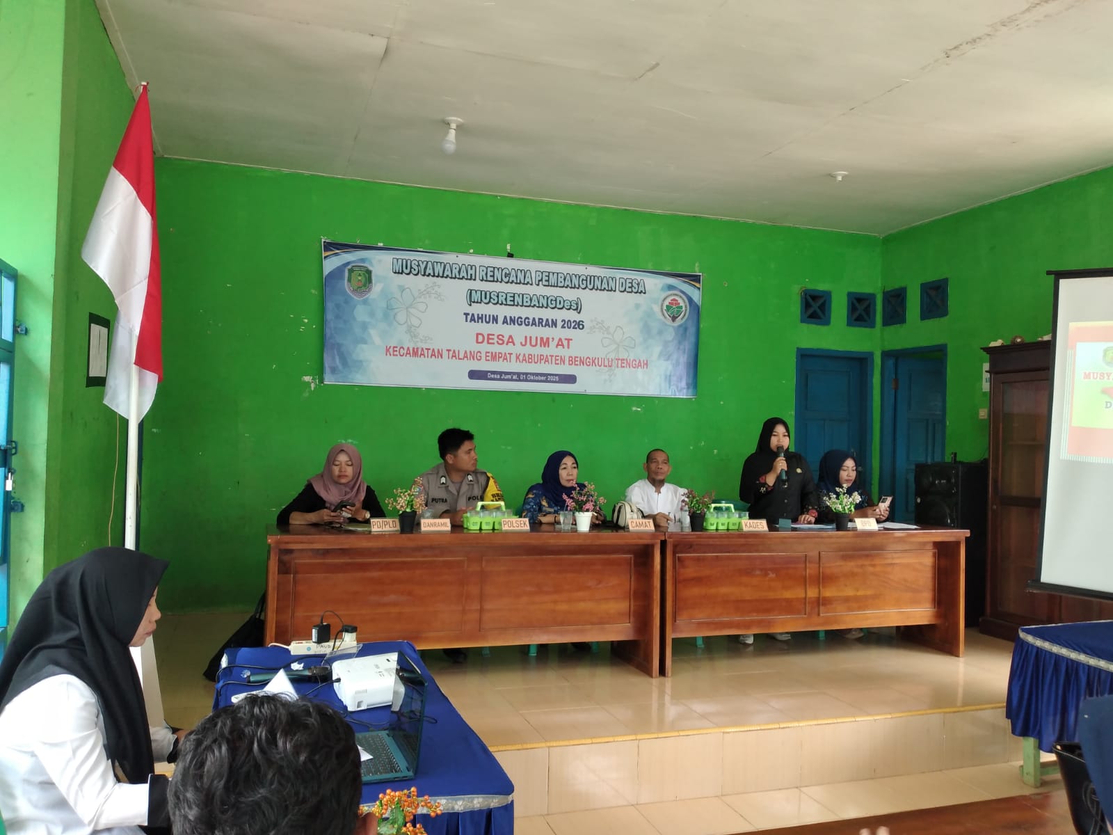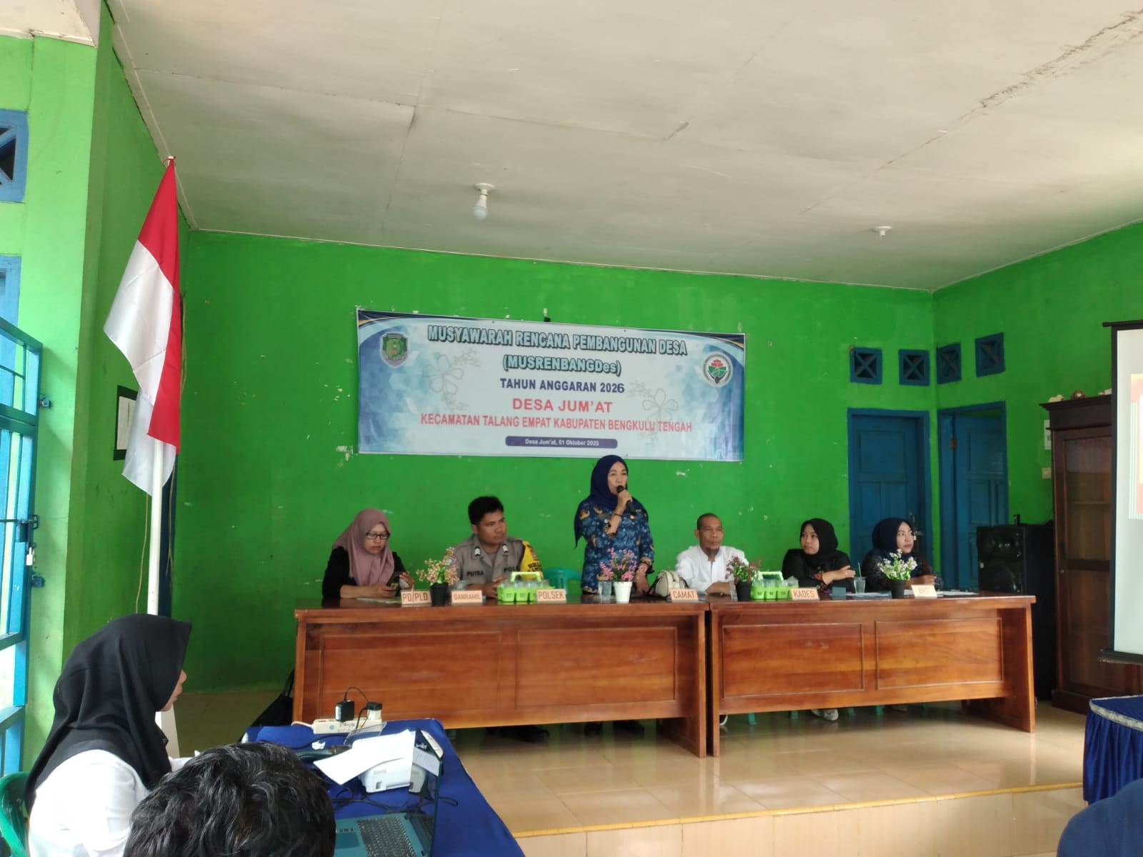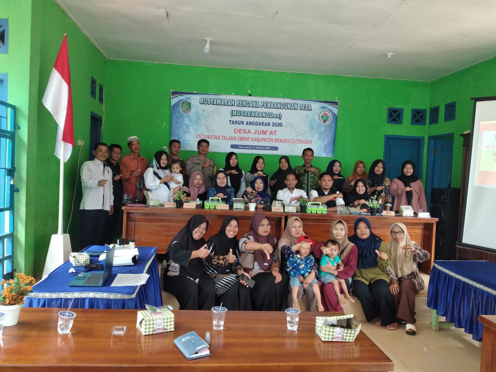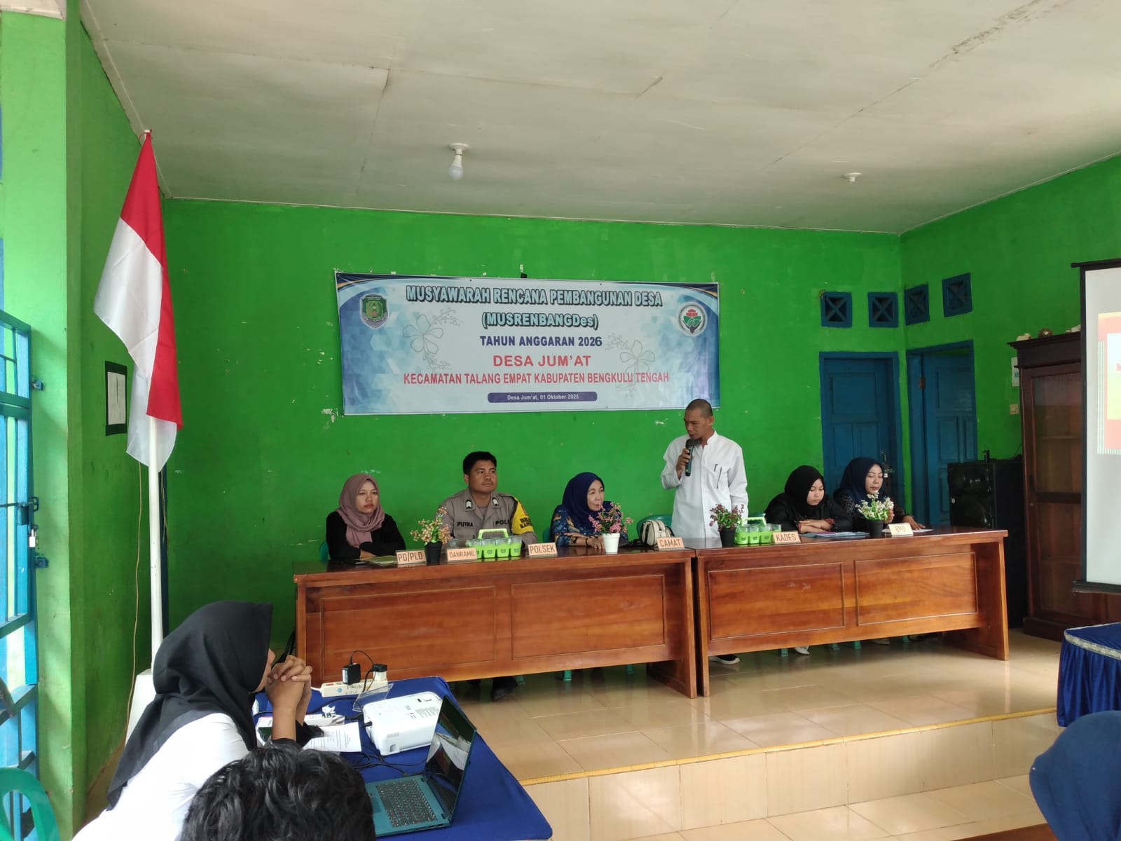 Bengkulu Tengah, siberkreatif.com – Pemerintah Desa Jum’at mengelar Musyawarah Rencana Pembangunan Desa (MusrenbangDes) tahun 2026, Rabu (01/10/2025) bertempat di Aula desa setempat.