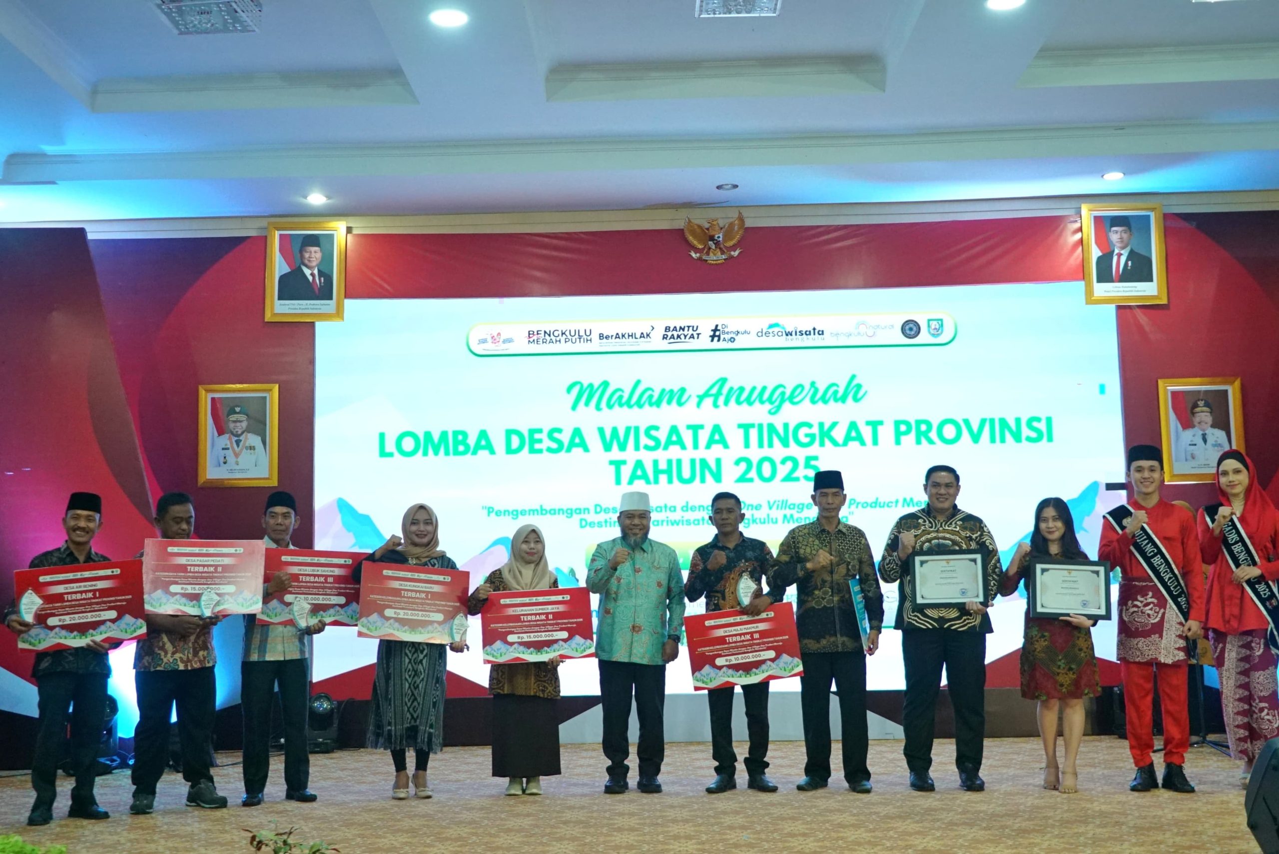 Bengkulu, siberkreatif.com – Gubernur Bengkulu, Helmi Hasan menyerahkan langsung penghargaan kepada para pemenang Lomba Desa Wisata Tahun 2025 dalam acara Malam Anugerah Desa Wisata yang digelar di Balai Semarak, Rabu (19/11).