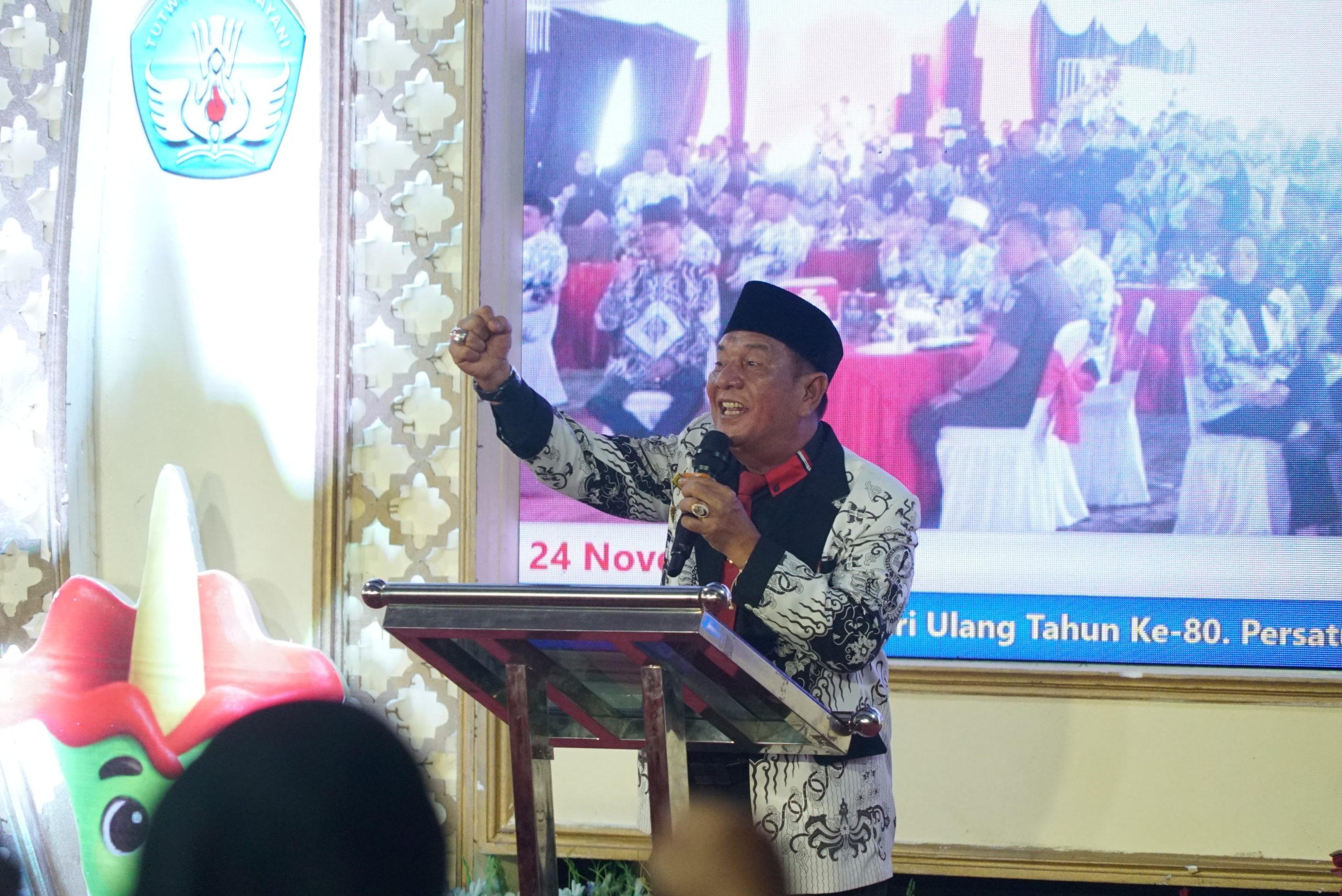 “Tidak ada seorang pun pejabat yang bisa menjadi gubernur, bupati, atau wali kota tanpa peranan guru. Jasa Bapak-Ibu guru terlalu besar untuk bisa kami balas,” ujarnya.
