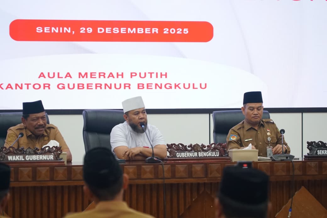 Bengkulu, siberkreatif.com – Gubernur Bengkulu Helmi Hasan mengapresiasi kinerja seluruh Organisasi Perangkat Daerah (OPD) Pemerintah Provinsi Bengkulu dalam rapat koordinasi dan evaluasi program tahun 2025 yang digelar di Aula Merah Putih, Senin (29/12).
