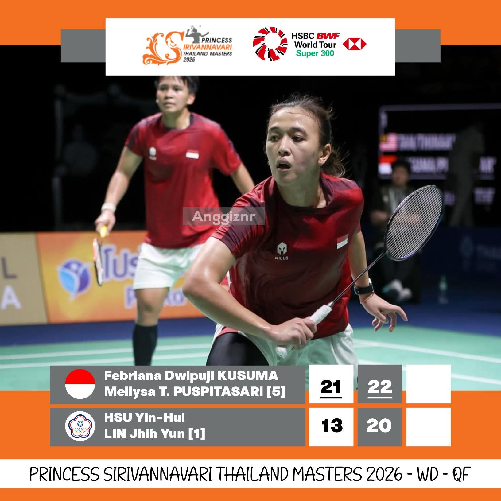 Kesuksesan ke-2 tunggal putra Indonesia ini juga di ikuti oleh ganda putri terbaik Indonesia Febriana Dwi Puji Kusuma/Mellysa Trias Puspitasari sukses menumbangkan unggulan pertama (ke-1) asal Negeri Chinese Taipei (Taiwan).