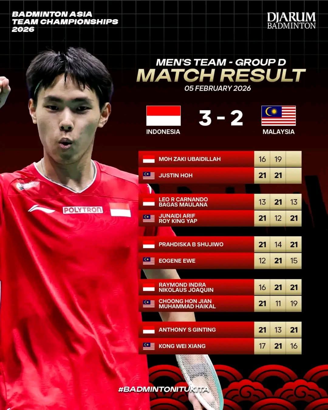 Semoga Ubed, Bagas Sujiwo dan kawan-kawan tim beregu putra lainnya ini, untuk di laga quarter final hari ini juga bisa mampu meraih kemenangan sehingga bisa terus melaju ke laga semifinal dan jika perlu tembus laga pamungkas (final),” ungkap Jerry anak muda pecinta badminton lovers tanah air pada media online nasional siberkreatif.com pagi ini, Jum’at (6/2/2026).