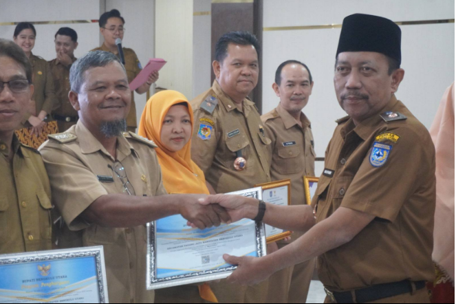 Sebagai bentuk motivasi, Pemerintah Kabupaten Bengkulu Utara memberikan penghargaan terbaik dalam pengawasan kearsipan kepada :