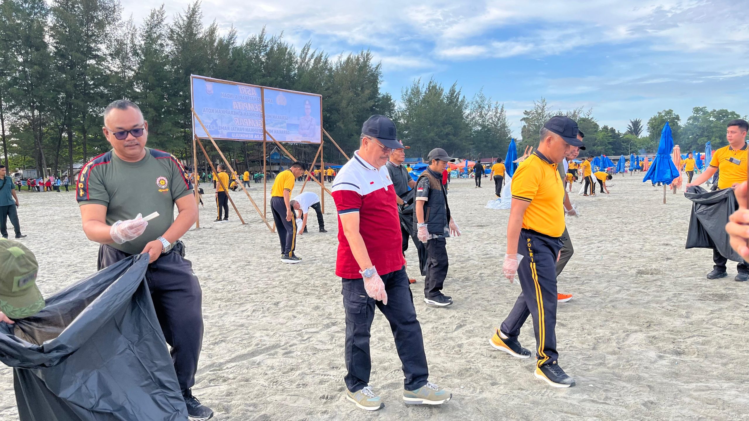 Lebih lanjut, Irjen Pol. Mardiyono menyampaikan bahwa kegiatan GEMPAR dilaksanakan secara serentak di 38 titik, meliputi Pantai Zakat, Pantai Panjang, kawasan perkotaan, pasar, hingga wilayah di 10 kabupaten se-Provinsi Bengkulu.